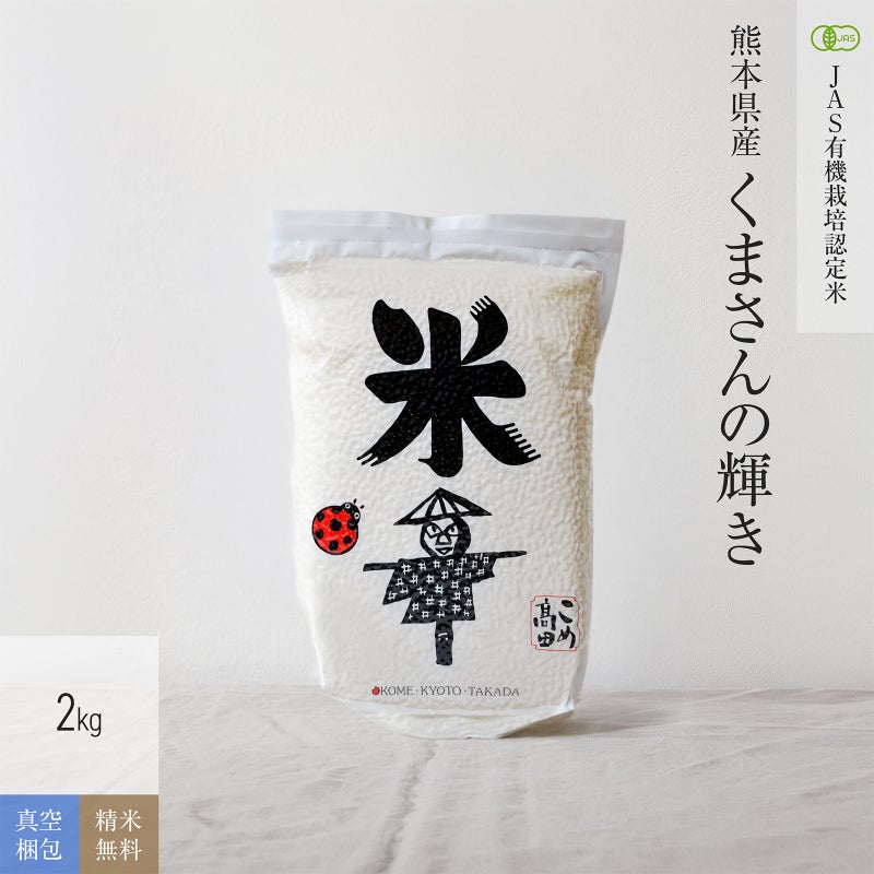 玄米・白米・分つき米・真空梱包 【JAS有機米 2kg(真空パック)】 7年産 熊本県産くまさんの輝き