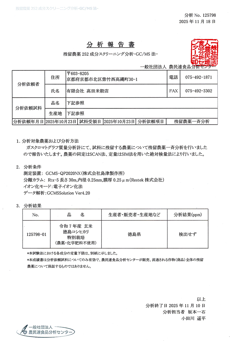 一等米の玄米でも、石やゴミ・もみ殻などが残ります。当店では、玄米食をされる方・ご家庭で精米される方のために、高性能な「玄米専用」の選別機を導入しております。これにより、もみ殻・やけ米・小石などがない、きれいな玄米をお届けすることが可能となっております。「京の米職人のこだわり」ページにて、出荷までの流れをさらに詳しく解説しております。 ※丁寧に時間をかけて選別しておりますが、機械での作業のため100%の処理ではない旨ご了承ください。